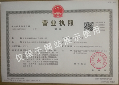 青海馳贏膜結構工程有限公司(17716069209)是一家專門從事膜結構工程的綜合公司,公司秉承信譽至上、質量保障的宗旨,開拓、發展、創新的理念,公司目前主要從事膜結構設計,方案設計、剪裁設計、膜材加工及鋼結構安裝與維修。